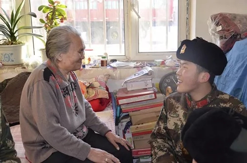 武警官兵给孤寡老人送去新年祝福